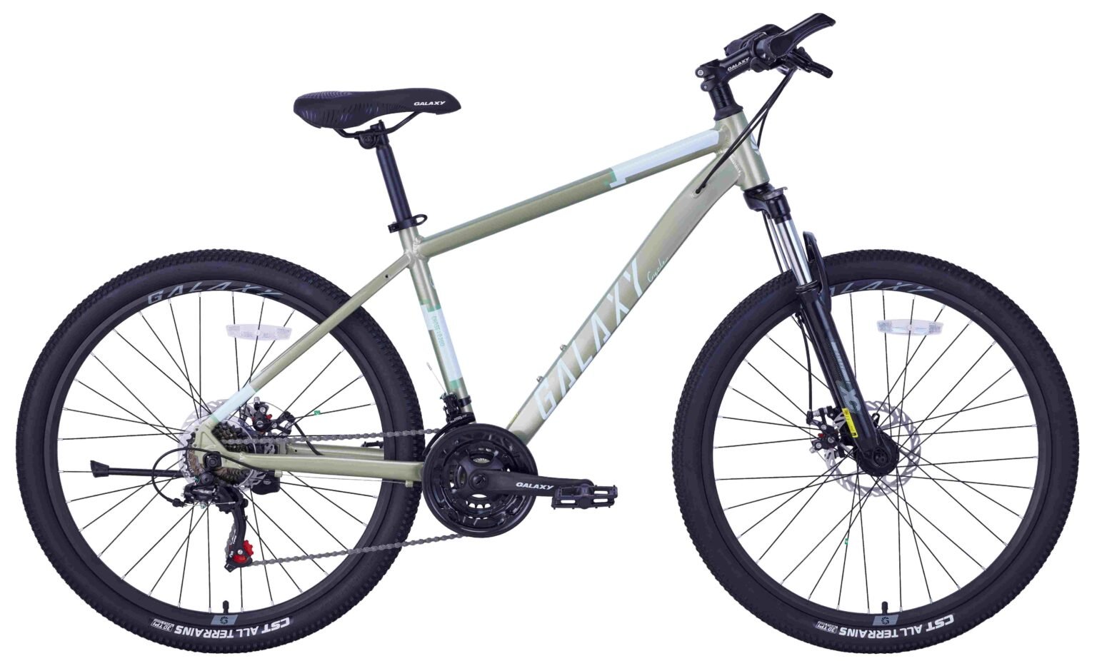 Equipado com um Sistema de mudanças Shimano de 21 velocidades (3×7), a Galaxy C200 dá-lhe flexibilidade para enfrentar colinas, passeios longos e terrenos planos sem esforço. Os travões de disco mecânicos oferecem uma potência de travagem fiável em diferentes condições meteorológicas, enquanto os pneus CST 26×1,95 proporcionam uma excelente aderência e estabilidade. Quer esteja a pedalar por diversão, fitness ou aventura, a Galaxy C200 proporciona uma experiência de condução profissional para os ciclistas do dia a dia.